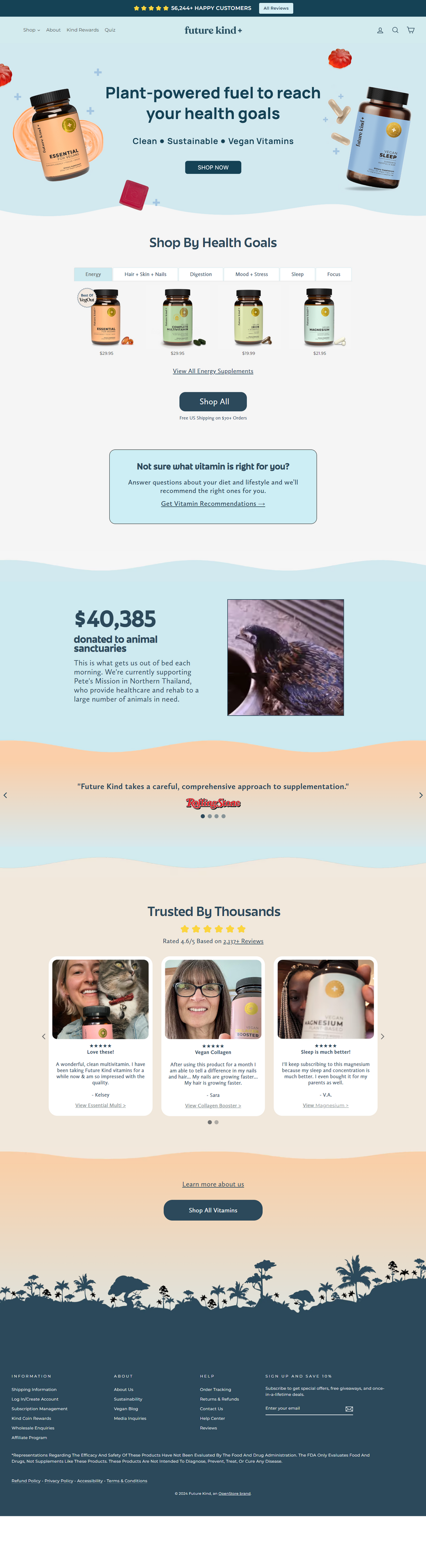 At CFC DESIGNER, we had the privilege of creating the Future Kind website. Founded by certified plant-based nutritionists Shaun and Eliot in 2019, Future Kind focuses on delivering premium, science-backed vegan supplements with a strong commitment to environmental sustainability. This project allowed us to reflect their values and dedication to health and wellness in a user-friendly, aesthetically pleasing online platform that resonates with a global audience.