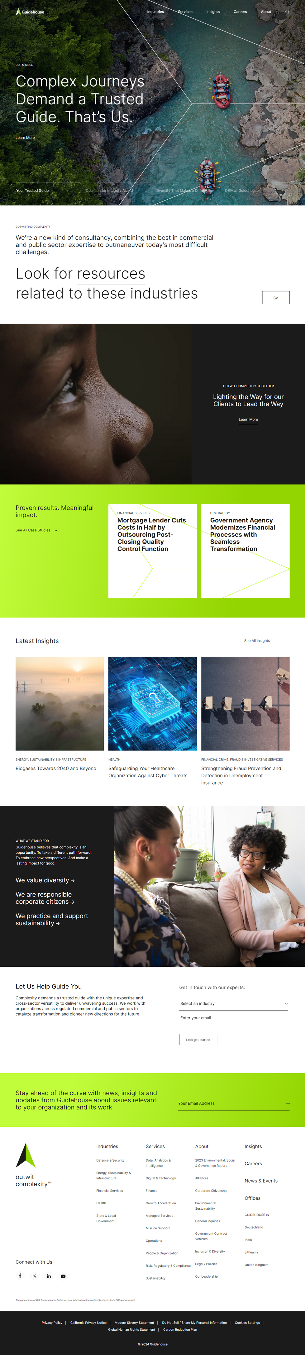 We collaborated with Guidehouse to create a dynamic and user-friendly website that reflects their unique approach to consultancy. Combining commercial and public sector expertise, Guidehouse needed a platform that showcases their ability to tackle today's toughest challenges. Our design emphasizes clarity, professionalism, and accessibility, ensuring an optimal user experience.